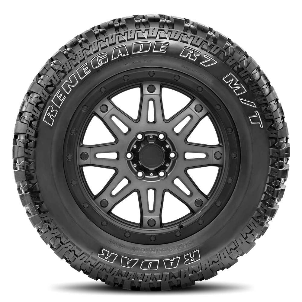 Designed specifically for extreme off-road applications, the Renegade R7 M/T from Radar is a mud-terrain tire that offers drivers high durability. Ideal for use on light trucks, SUVs, and vehicles with lift-kits, the Renegade R7 M/T features State-of-the-Art Stone Ejector Technology that prevents stone retention and subsequent tire damage.