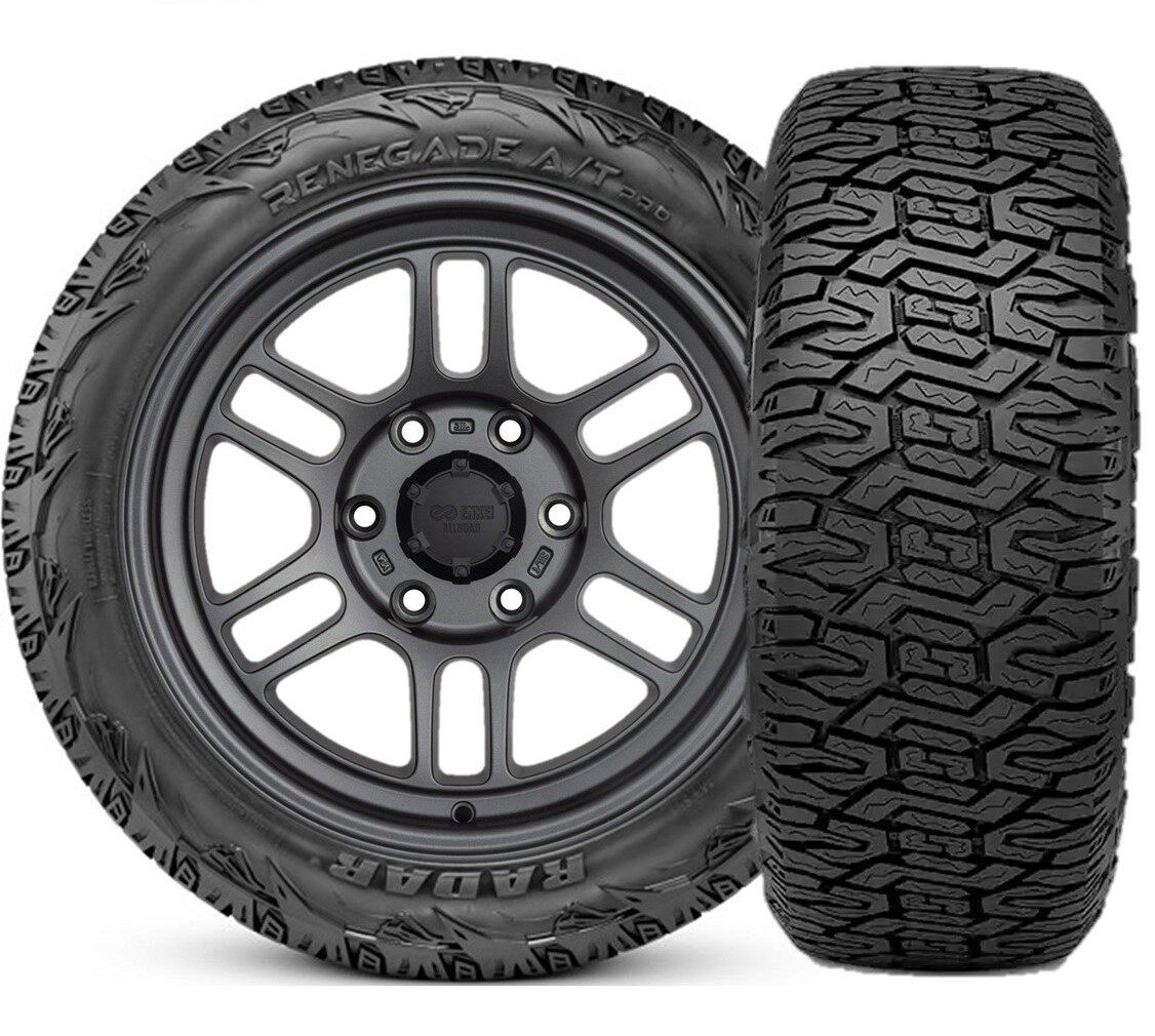 Radar’s brand-new Renegade A/T Pro is an all-terrain tire that’s engineered to give drivers exceptional off-road performance along with a smooth, quiet on-road ride. Featuring a special silica-based rubber compound, the Renegade A/T Pro can withstand cuts and chips that are common with off-road driving while also offering drivers strong grip and handling capabilities to ensure traction on any terrain.